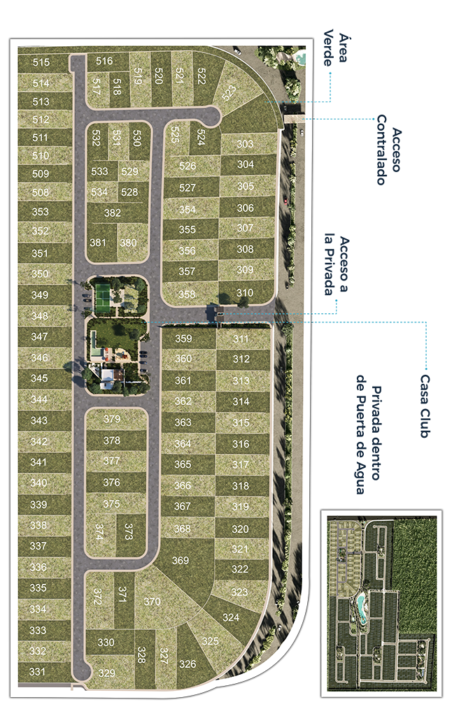 El desarrollo cuenta con una casa club privada, y una segunda casa club compartida con Puerta de Agua, el cual tiene un lago natural navegable, cada terreno cuenta con espaciosos totalmente urbanizados, para que usted construya, disfrute y viva como siempre ha soñado.